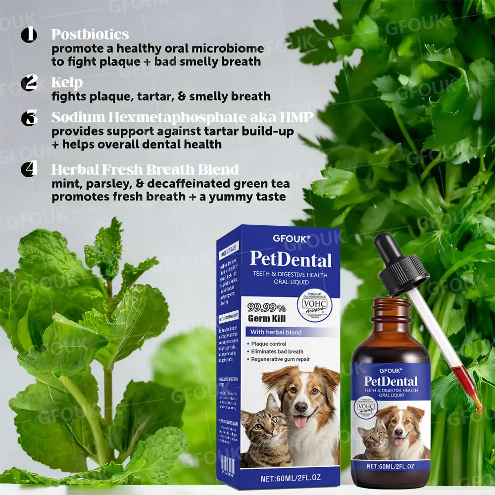 GFOUK® Pet Dental & Digestive Health Oral Liquid brings a comprehensive and clean oral experience.