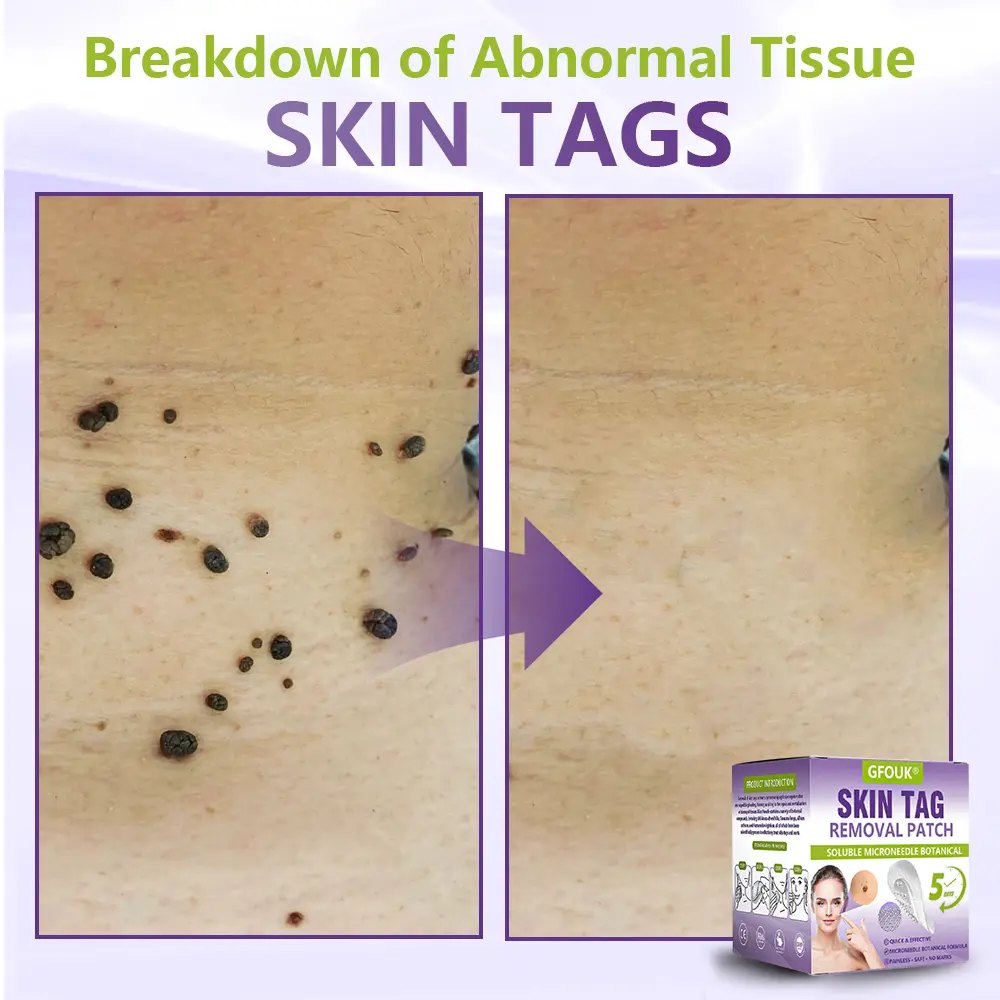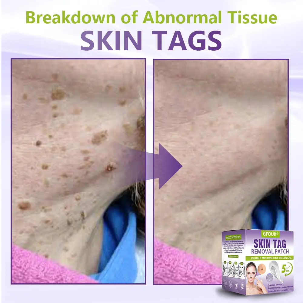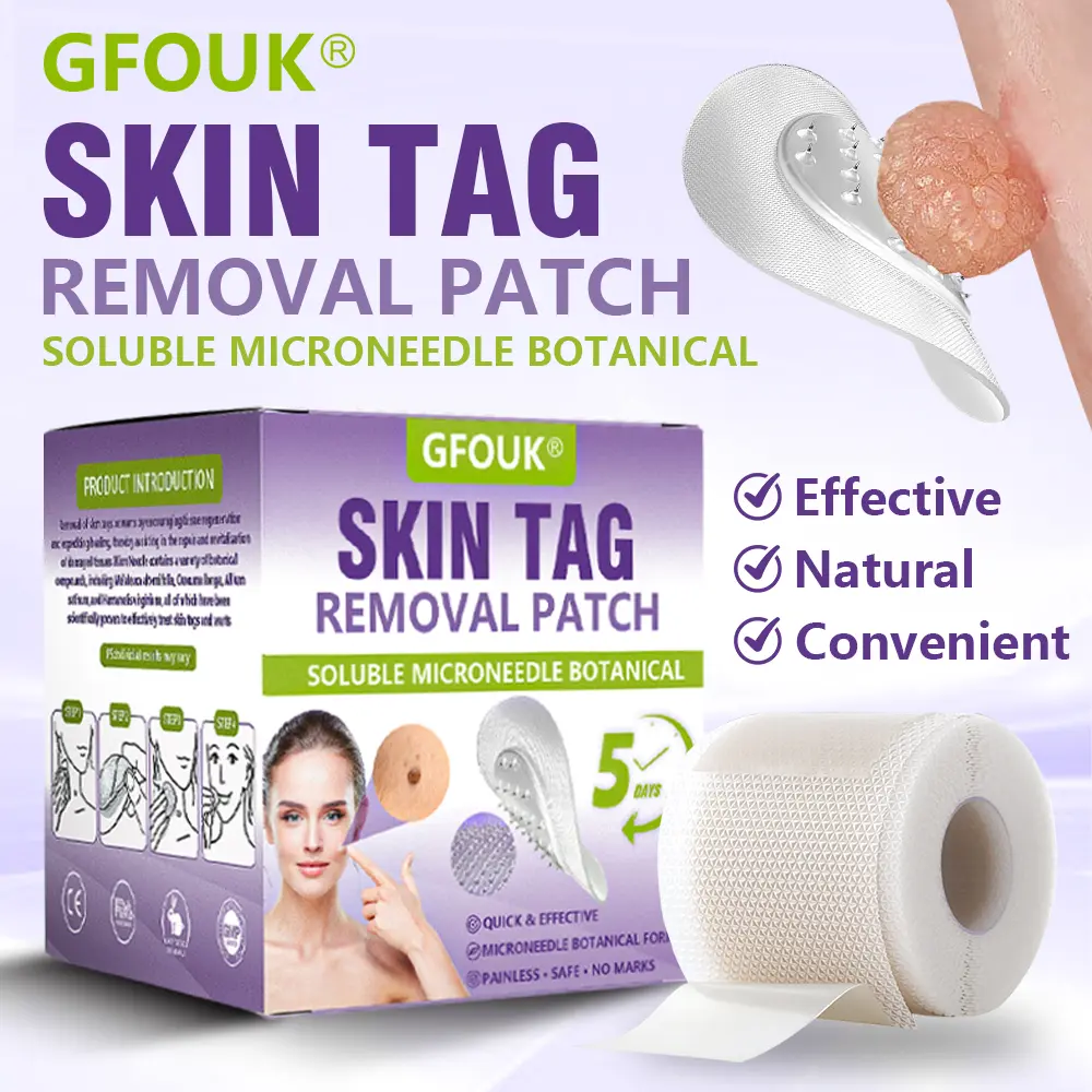 The GFOUK® Soluble Microneedle Botanical Skin Tag Removal Patch is an organic micro-needle patch that delivers botanical ingredients deep into the skin to remove skin tags, moles, and warts. Just one application can cause unwanted skin tags to fall off within five days, making it an effective treatment. It is highly recommended by pharmacists and dermatologists worldwide for its safety, reliability, and non-prescription convenience.