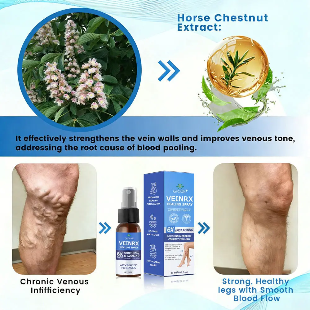 Try GFOUK® VEINRX Herbal Vein Healing Spray. It targets damaged veins at the root, improves circulation, and helps prevent future flare-ups — naturally and pain-free.